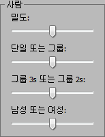 - 유휴 영역에서 사람의 상대적인 수입니다. 사람을 적게 하려면 슬라이더를 왼쪽으로 드래그하고 더 많게 하려면 오른쪽으로 드래그합니다.
