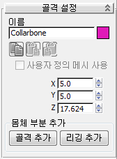 쇄골에 소품 등의 특수 리깅 오브젝트를 추가합니다. 자세한 내용은