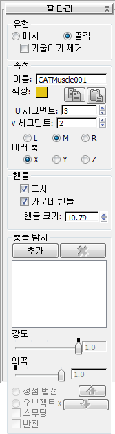 CATMuscle을 만든 후에는 CATMuscle이 세그먼트화되는 방식, 해당 충돌 탐지 특성 등을 수정할 수 있습니다.