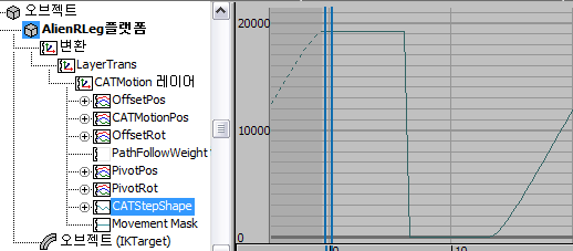 곡선 편집기가 열리고 CATStepShape 트랙의 곡선이 표시됩니다.
