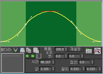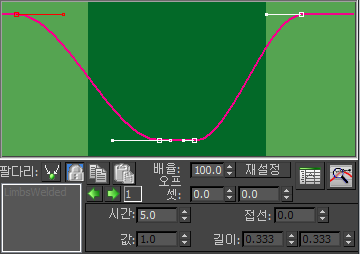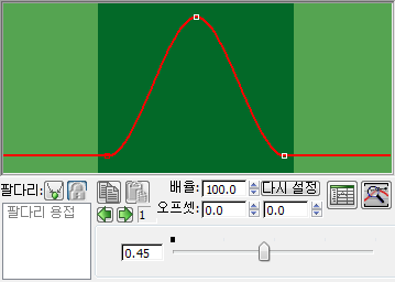 슬라이더를 왼쪽으로 이동하면 곡선이 진한 초록색 영역에서 더 좁아집니다. 즉, 발이 지면 위에 더 오래 머무르기 때문에 "우주 공간에서 걷기" 효과가 생성됩니다.