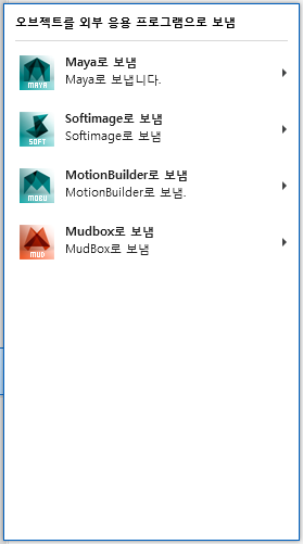 보냄 하위 메뉴는 다른 Autodesk 제품과의 상호 운용성을 제공합니다.