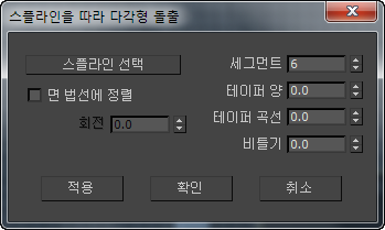 이 설정은 대화식 조작 모드에서 스플라인을 따라 다각형을 입체적으로 만드는 데 사용합니다.