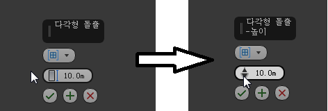 오른쪽: 마우스 커서가 높이 컨트롤 위에 놓여 있습니다.