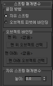 이러한 컨트롤을 사용하여 스프링이 바인딩되는 오브젝트를 선택합니다. "맨 위" 및 "맨 아래"는 임의 설명자로, 바인딩된 두 오브젝트가 서로 위치 관계를 가질 수 있습니다. 바인딩을 완료하려면 두 개의 바인딩 오브젝트를 선택한 다음 오브젝트 피벗에 바인딩을 클릭합니다.