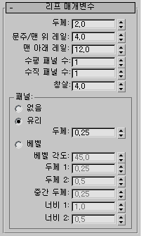 상단 및 측면에 있는 패널 프레임의 폭을 설정합니다. 이 설정은 문이 패널 처리된 경우에만 분명하게 나타납니다.