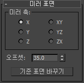 미러 축 버튼은 원래 표면이 미러링되는 방향을 컨트롤합니다.