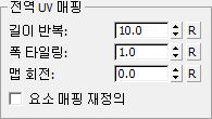 이 옵션은 타일 적용 가능 텍스처 맵에만 유효하며 절차 텍스처 맵에서 사용될 경우 무시됩니다.