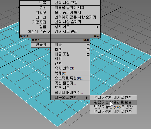 편집 가능한 폴리로 변환을 선택합니다. 또는 폴리 편집 수정자를 적용합니다.