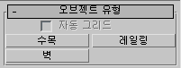 각 AEC 확장 오브젝트의 만들기 패널에 있는 오브젝트 이름 및 와이어프레임 색상 롤아웃은 동일하게 작동합니다. 나머지 롤아웃에 대해서는 각 오브젝트의 항목에서 설명합니다.
