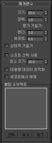 - 최소 크기소프트 선택 사용이 설정되면 폴오프 내에서 메타볼의 최소 크기를 설정합니다. 기본값은 10.0입니다.