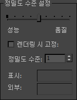 오브젝트에서 현재 보이는 점 수와 총 점 수는 정밀도 수준 설정 그룹의 맨 아래에 있는 표시 및 전체(읽기 전용) 필드에 각각 표시됩니다.