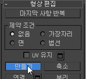 정점 용접 같은 다른 다각형 편집 도구를 사용하여 다각형을 단일 오브젝트로 결합할 수 있습니다. 또한 2단계에서 원래 오브젝트의 형상을 삭제하여 임의의 하위 오브젝트 수준에 새로 만든 다각형만 남겨둘 수 있습니다.