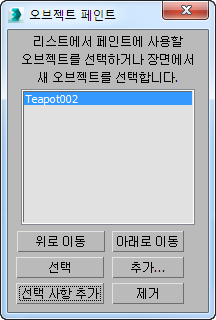 리스트에서 페인트 오브젝트를 지정할 오브젝트 선택 대화상자를 엽니다.