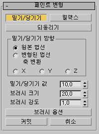 - 페인트 변형 롤아웃에서 밀기 당기기를 클릭합니다.