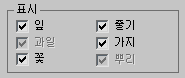 식물의 잎, 열매, 꽃, 줄기, 가지 및 뿌리 표시를 제어합니다. 사용 가능한 옵션은 선택한 식물 유형에 따라 달라집니다. 예를 들어, 열매가 없는 식물의 경우 3ds Max에서 해당 옵션이 비활성화됩니다. 옵션을 끄면 표시되는 정점과 면의 수가 줄어듭니다.