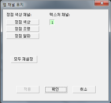 모든 채널 버튼을 기본 상태(모든 정점 색상 채널 해제, 모든 텍스처 채널 설정)로 되돌립니다.