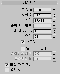 반지름 1과 2가 같으면 원통이 만들어집니다. 두 반지름 설정의 크기가 가까우면 원통에 테이퍼 수정자를 적용하는 것과 효과가 비슷합니다.