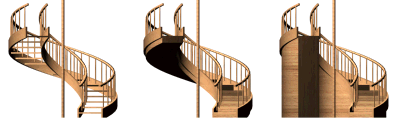 나선형 계단 오브젝트를 사용하면 공전의 반경 및 수를 지정하며 세로보, 중앙 폴 등을 지정할 수 있습니다.