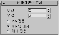 각각 표면의 로컬 U 및 V 치수에 따라 뷰포트에서 NURBS 표면의 근사값을 구하는 데 사용되는 선 수입니다. 이 값을 줄이면 표면의 표시 속도가 빨라지지만 정확성은 떨어집니다. 이 값을 늘리면 시간은 증가하지만 정확성이 향상됩니다. 이 값 중 하나를 0으로 설정하면 해당하는 차원에 오브젝트의 가장자리만 표시합니다.
