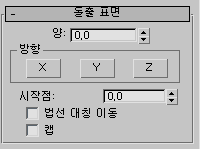법선 대칭 이동 컨트롤을 사용하여 생성 시 표면 법선을 대칭 이동할 수 있습니다. 만든 후 표면 공통 롤아웃의 컨트롤을 사용하여 법선을 대칭 이동할 수 있습니다.
