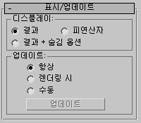 이 옵션은 합성 오브젝트의 투영이 다시 계산되는 시기를 결정합니다. 복잡한 합성 오브젝트의 경우 성능이 저하될 수 있으므로 이 옵션을 사용하여 지속적인 계산을 피할 수 있습니다.