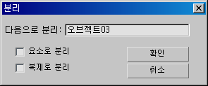 기본적으로 요소로 분리와 복제로 분리는 모두 실행 중지 상태입니다. 따라서 하위 오브젝트 선택을 분리하면 원 오브젝트에서 제거되어 새 오브젝트가 됩니다. 대화상자 옵션을 통해 분리된 항목을 원 오브젝트의 요소로 유지하고 원 선택의 복사본으로 분리할 수 있습니다.