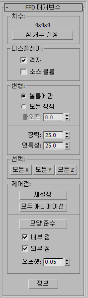 FFD에 의해 영향을 받는 정점을 지정하는 컨트롤을 제공합니다.