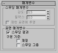 렌더링 시 오브젝트에 적용할 다른 스무드 값을 선택할 수 있습니다. 스무드를 켠 다음 오른쪽에 있는 스피너를 사용하여 해당 값을 설정합니다.