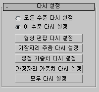 이 롤아웃을 사용하여 하위 오브젝트 변형(형상 편집 사항), 가장자리 주름에 대한 변경 사항, 정점 가중치 및 가장자리 가중치 등에 대한 변경 사항을 기본값 또는 초기 설정으로 되돌릴 수 있습니다.
