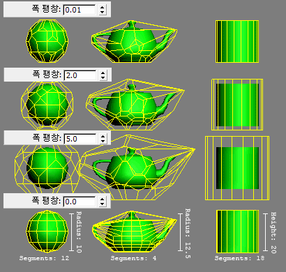 - 외피 레이어에 의해 모든 면에서 균일하게 모양을 늘립니다.