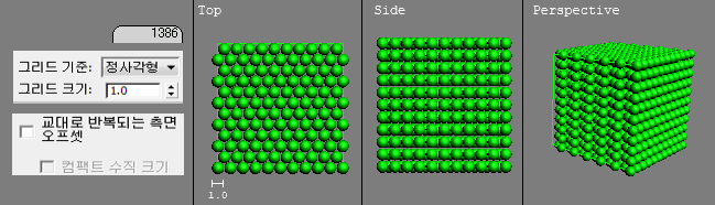 - 그리드 크기, 상한 및 아이콘 크기 설정에 따라 그리드를 채우는 데 사용할 수 있는 파티클이 부족한 경우 배열이 잘립니다. 이런 경우 상한 설정을 늘리고 파티클 수 증가로 인한 감속 가능성에 대비합니다.