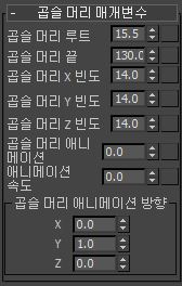 곱슬 머리 루트=30.0, 곱슬 머리 끝=100.0, 곱슬 머리 X/Y/Z 빈도=14.0