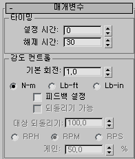 - 피드백이 적용되기 전의 최대 회전 수를 지정합니다. 속도는 프레임당 이동된 단위로 지정됩니다. 피드백 설정을 설정한 경우에만 사용할 수 있습니다.