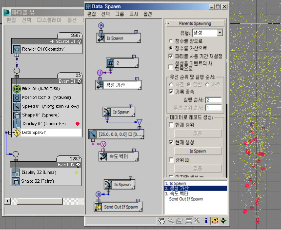 여기에서 분기와 함께 사용된 벡터 하위 연산자는 개별 생성 파티클을 서로 분리하고 상위를 분리합니다.