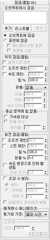 이러한 옵션은 파티클이 이벤트에 들어온 후 잠금 점에서의 파티클 이동을 제어합니다.
