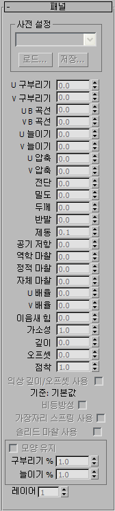 의상 특성 매개변수를 나중에 로드할 수 있는 파일에 저장합니다. 기본적으로 의상 사전 설정 파일은 3ds Max 설치 디렉토리 내부의 ₩cloth 폴더에 저장됩니다.