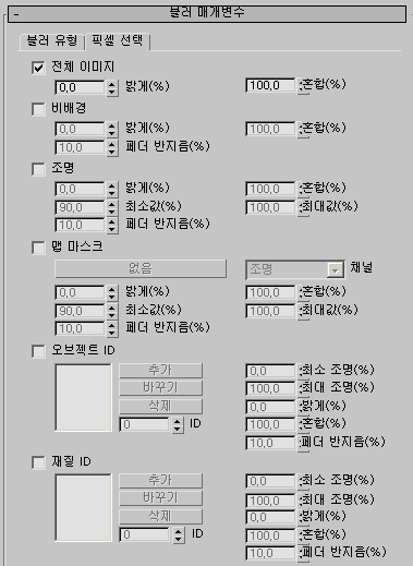 최대픽셀에 블러 효과를 적용하기 위해 픽셀이 가질 수 있는 최대값(RGB, 알파 또는 발광)입니다.