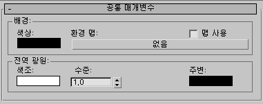 주변 라이트의 색상이 장면을 칠합니다. 대부분의 렌더링의 경우 주변 라이트의 색상이 검은색이어야 합니다.