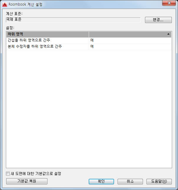 설정은 현재 도면에 저장됩니다. 새 도면에는 설정을 변경할 때까지 기본 설정이 적용됩니다.