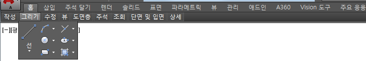작업공간에 표시되지 않거나 닫혀 있는 리본을 표시하려면 명령줄에