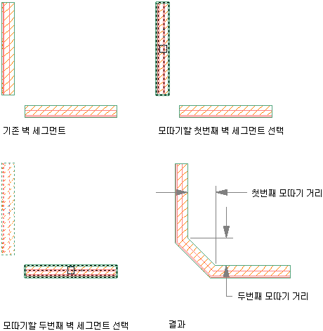 거리 옵션을 사용하여 벽 세그먼트 모따기