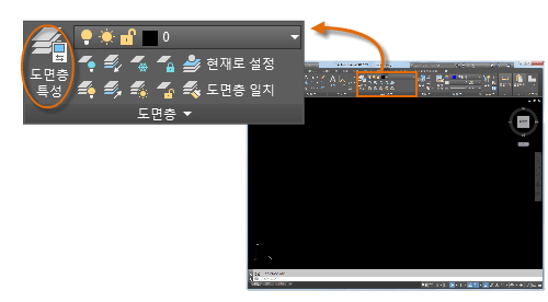 도면이 구성되는 방법을 보려면 LAYER 명령을 사용하여 도면층 특성 관리자를 엽니다. 명령 윈도우에 LAYER 또는 LA를 입력하거나 리본에서 도면층 특성 도구를 클릭할 수 있습니다.