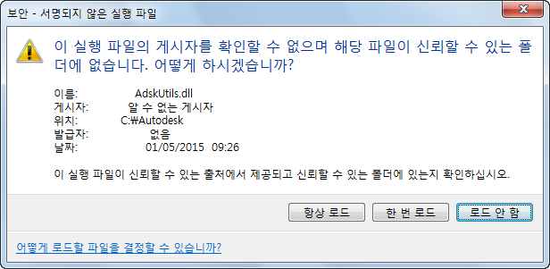 해결 방법: 예상대로 파일을 로드하여 사용합니다. 필요에 따라, 게시자가 서명한 모든 파일에 대해 앞으로 메시지 상자가 표시되지 않도록 게시자를 신뢰할 수도 있습니다.