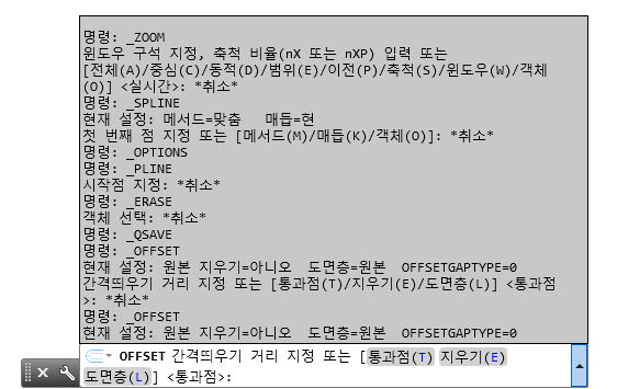 명령 윈도우에서 문자를 편집하여 명령 및 시스템 변수를 실행하거나 수정할 수 있습니다.