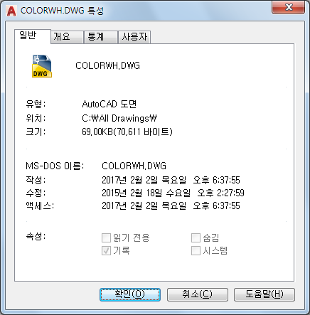 운영 체제에서 파생되는 도면 파일에 대한 읽기 전용 정보를 표시합니다.