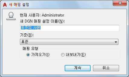 DGN 파일 가져오기 또는 내보내기를 위한 매핑을 설정합니다.