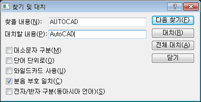 MTEXT(명령) 찾기: 문자 편집기 또는 MTEXT 바로 가기 메뉴에서 찾기 및 대치 아이콘을 선택합니다.