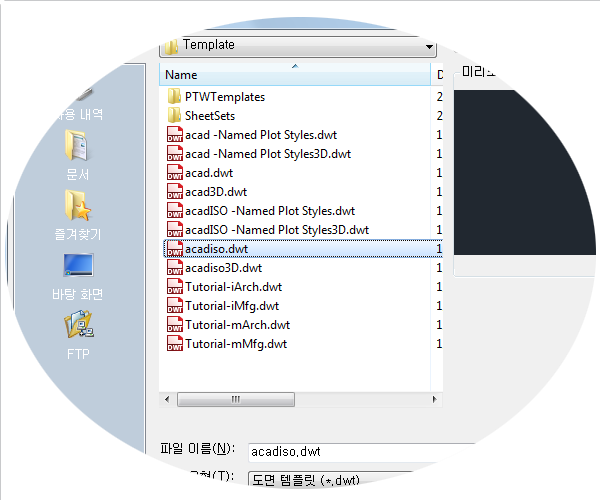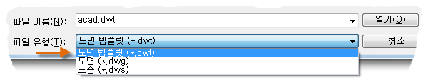 기존 도면 템플릿 파일을 수정하려면 열기를 클릭하고 파일 선택 대화상자에서 도면 템플릿(*.dwt)을 지정한 후에 템플릿 파일을 선택합니다.