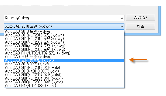 어떤 도면(.dwg) 파일이든 도면 템플릿(.dwt) 파일로 저장할 수 있습니다. 또한 기존 도면 템플릿 파일을 열어 수정한 다음 다른 파일 이름(필요한 경우)으로 다시 저장할 수 있습니다.